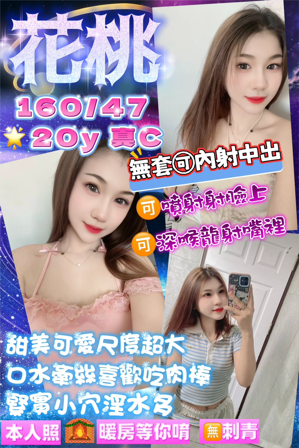 無套吹/親嘴/舌吻/品鮑/69/奶炮/按摩/舔蛋蛋/懶人澡/水中蕭/絲襪(自備/角色扮演(自備